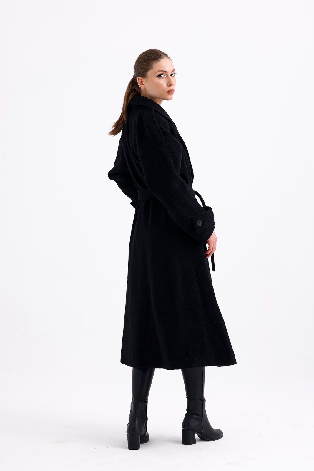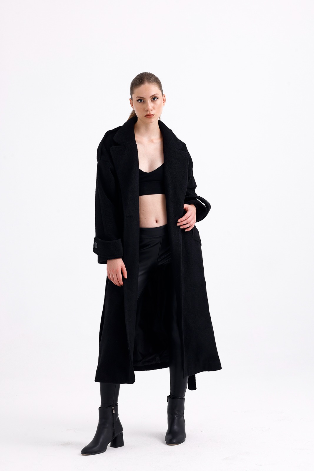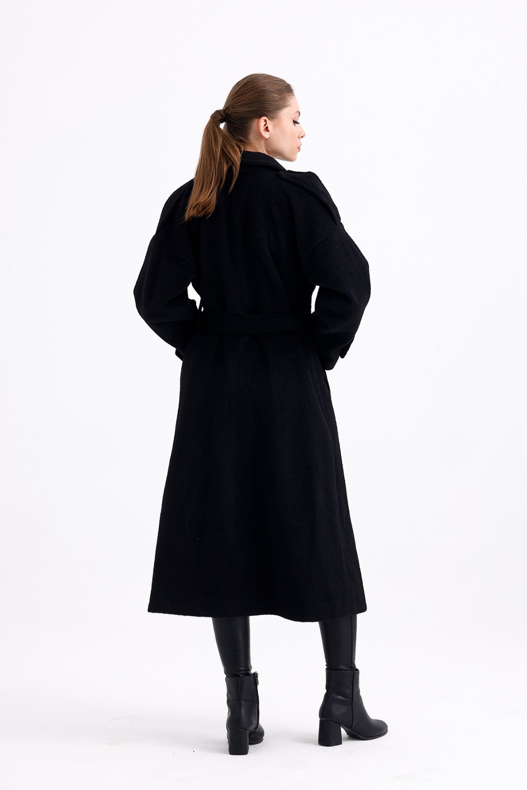 Long Black Wool Mixture Overcoat