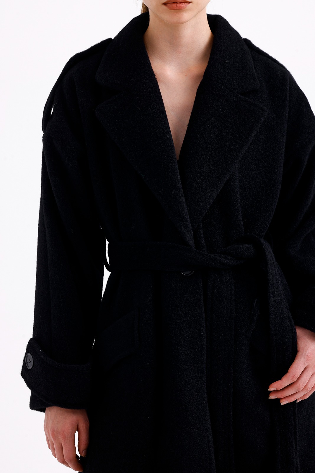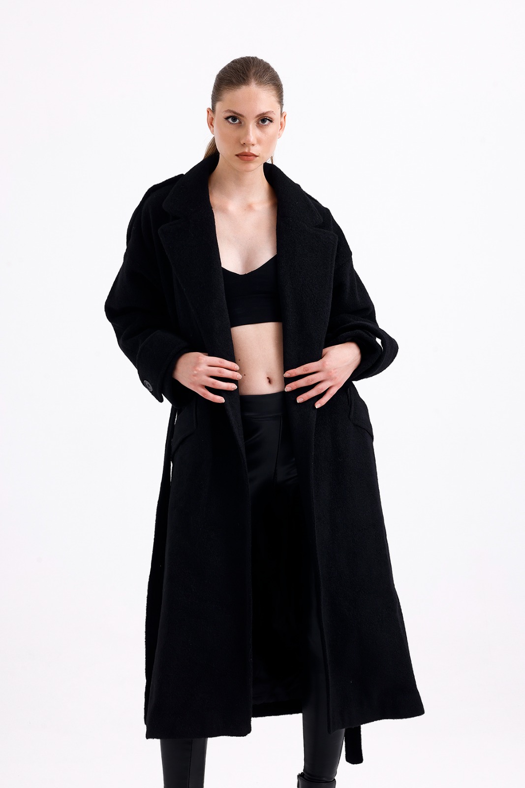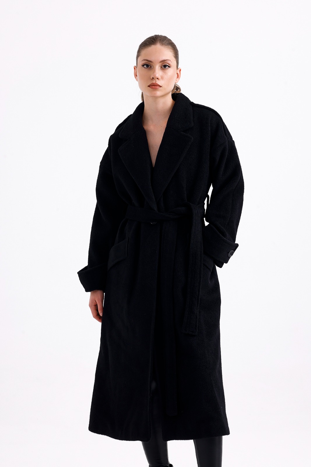 Long Black Wool Mixture Overcoat
